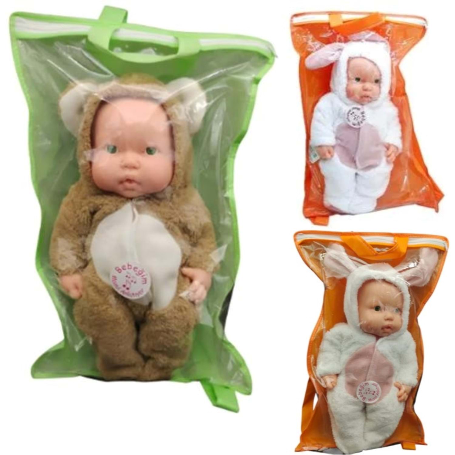 ÇANTA POŞETLİ AYI VE TAVŞAN KOSTÜMLÜ TOBUL BEBEK 662294 *12